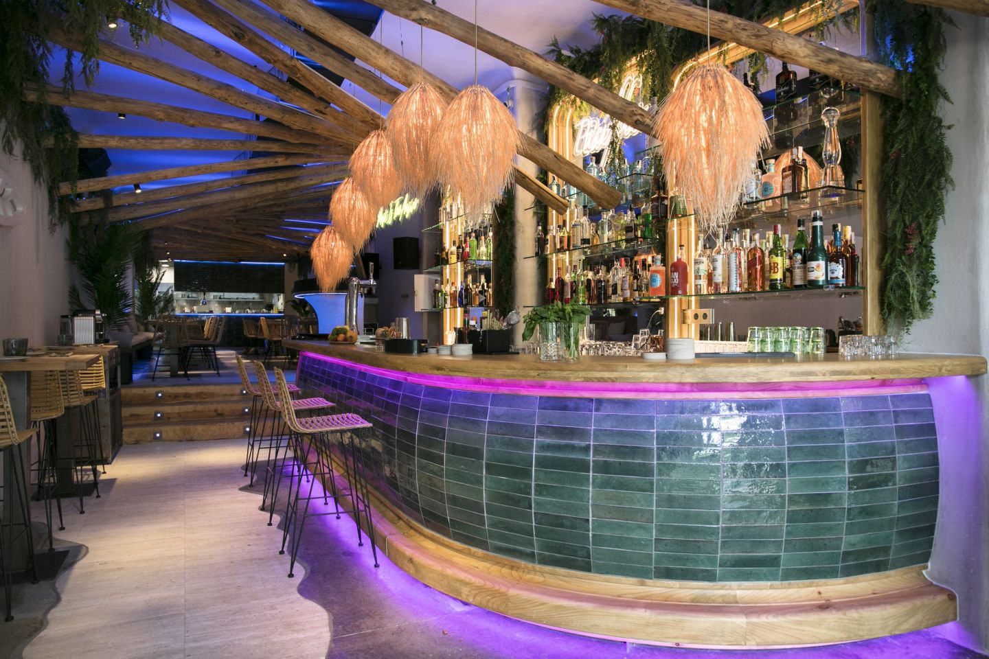 En Pacífico, su decoración vibrante, de colores vivos y ambientada en el mar te recibe nada más entrar por la puerta. Después de tomar un Margarita o un Mojito preparado por su maestro coctelero en la barra, puedes acceder al comedor a probar sus sabrosos platos.