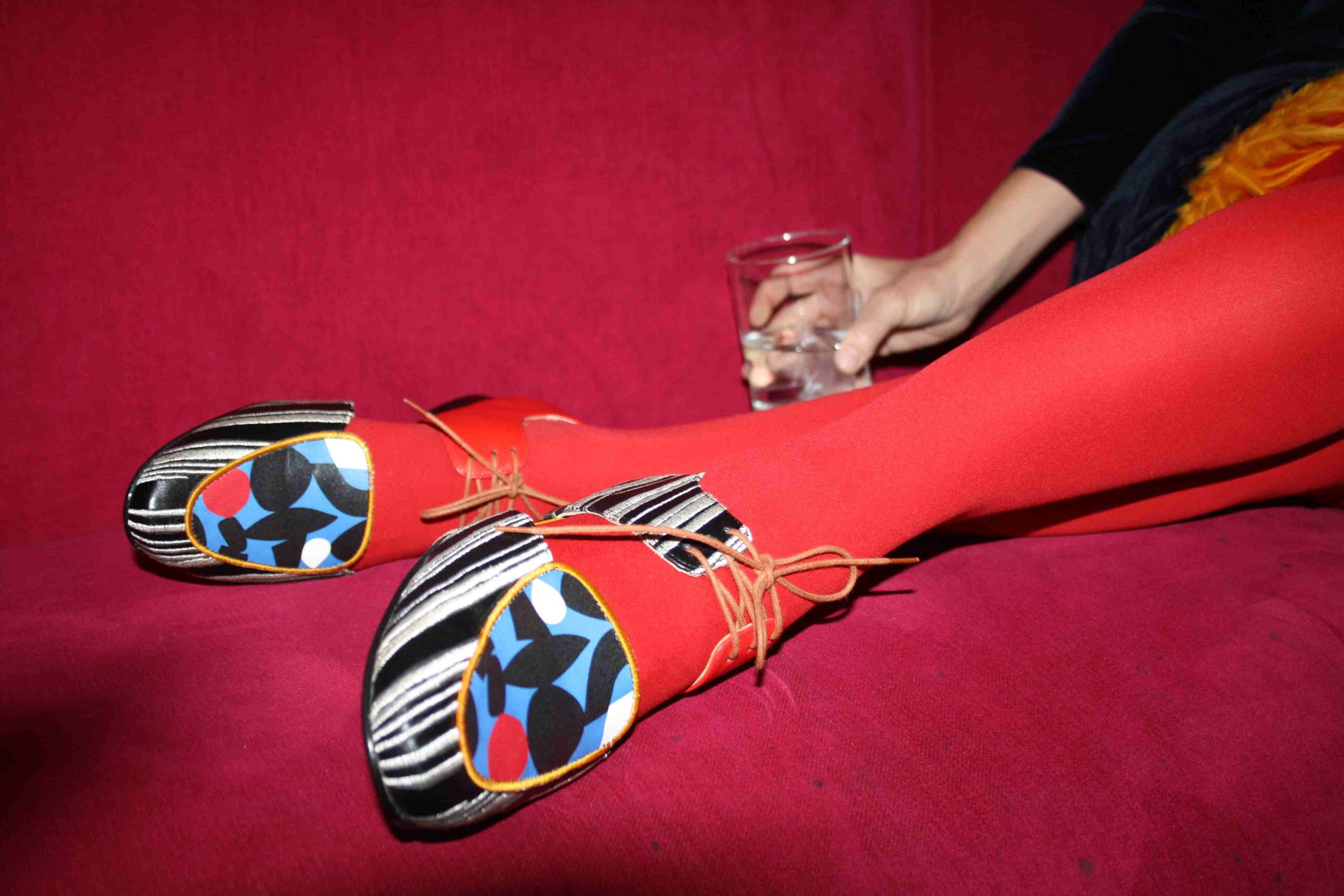 El modelo se caracteriza por su relieve aterciopelado en blanco y negro, con un estampado en la horma que integra una tonalidad roja en el interior, que se fusiona con cordones en cuero naranja. Un diseño que respira el estilo elegante y sofisticado que sus fundadores, Ana e Irene, reflejan.