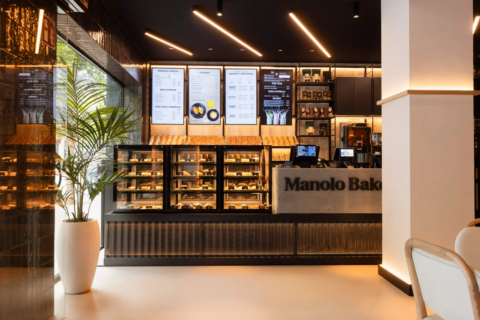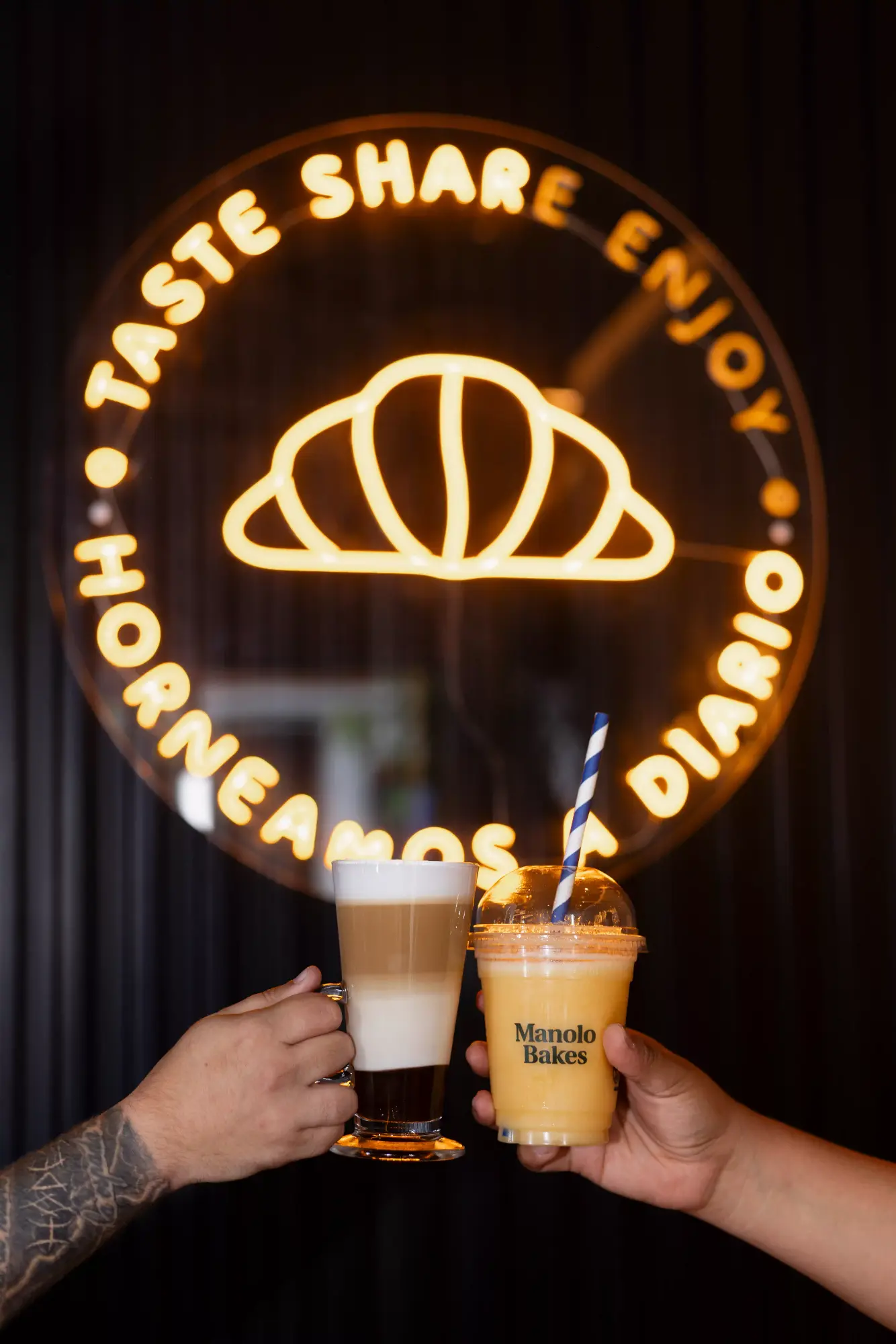 Manolo Bakes es reconocida por sus Manolitos y Palmitas, que se hornean cada día y se decoran a mano uno a uno con mucho mimo. Además, la compañía es también referente por su exclusivo café de especialidad, elaborados con leche fresca y a partir de un blend único. Asimismo, Manolo Bakes presume de un amplio surtido de bollería y propuestas saladas confeccionadas con las materias primas de la mejor calidad, siendo ese estándar uno de los principales pilares de la marca.